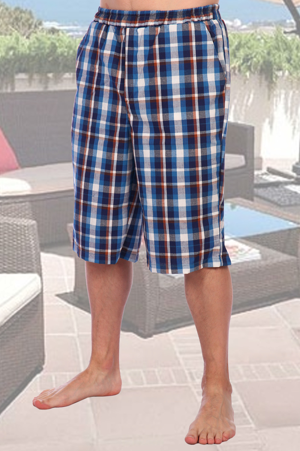 Мужские бриджи. Клетчатый дизайн, ткань — шотландка, 100% хлопок. Пояс отрезной, собранный на широкой резинке с отстрочкой. Карманы внутренние, боковые и 1 задний накладной карман с клапаном. Длина чуть ниже колена. Данный товар идёт в случайной расцветке.