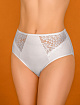 Трусы из эластичного полотна, эластичного кружева, с высокой линией талии. Отделка эластичной декоративной тесьмой.