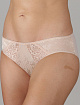 Трусы из эластичного полотна, эластичного кружева, х/б ластовица, со средней линией талии. Отделка эластичной декоративной тесьмой.