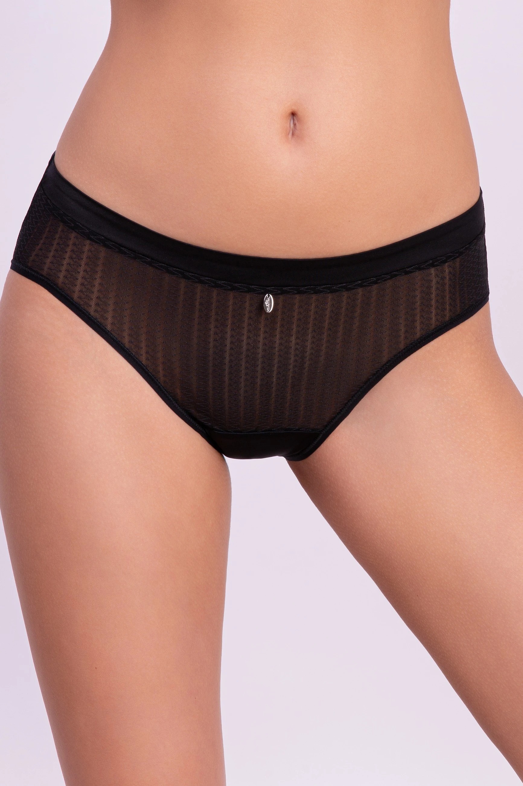 Трусы слип со средней линией талии. Выполнены из эластичного трикотажного и эластичного сетчатого полотна, хлопковая ластовица.