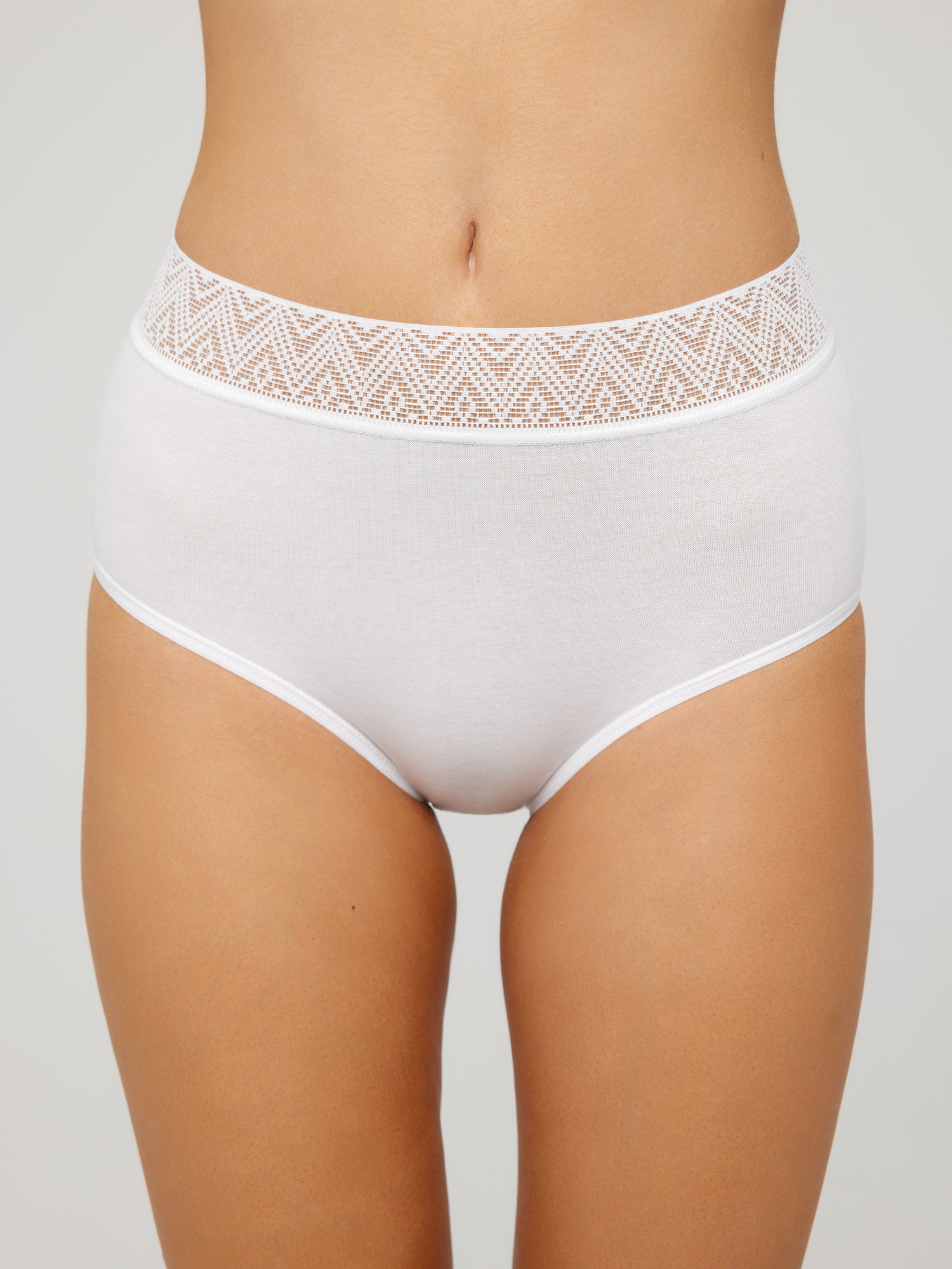 Трусы женские Maxi без боковых швов с кружевым поясом. Утягивающий эффект за счет высокой посадки. Полотно на основе хлопка позволяет коже «дышать» и регулирует микроклимат, поэтому в нём приятно находиться. В составе есть эластановые нити, которые придают упругость и формоустойчивость. Немецкий бельевой стандарт в современной интерпретации!