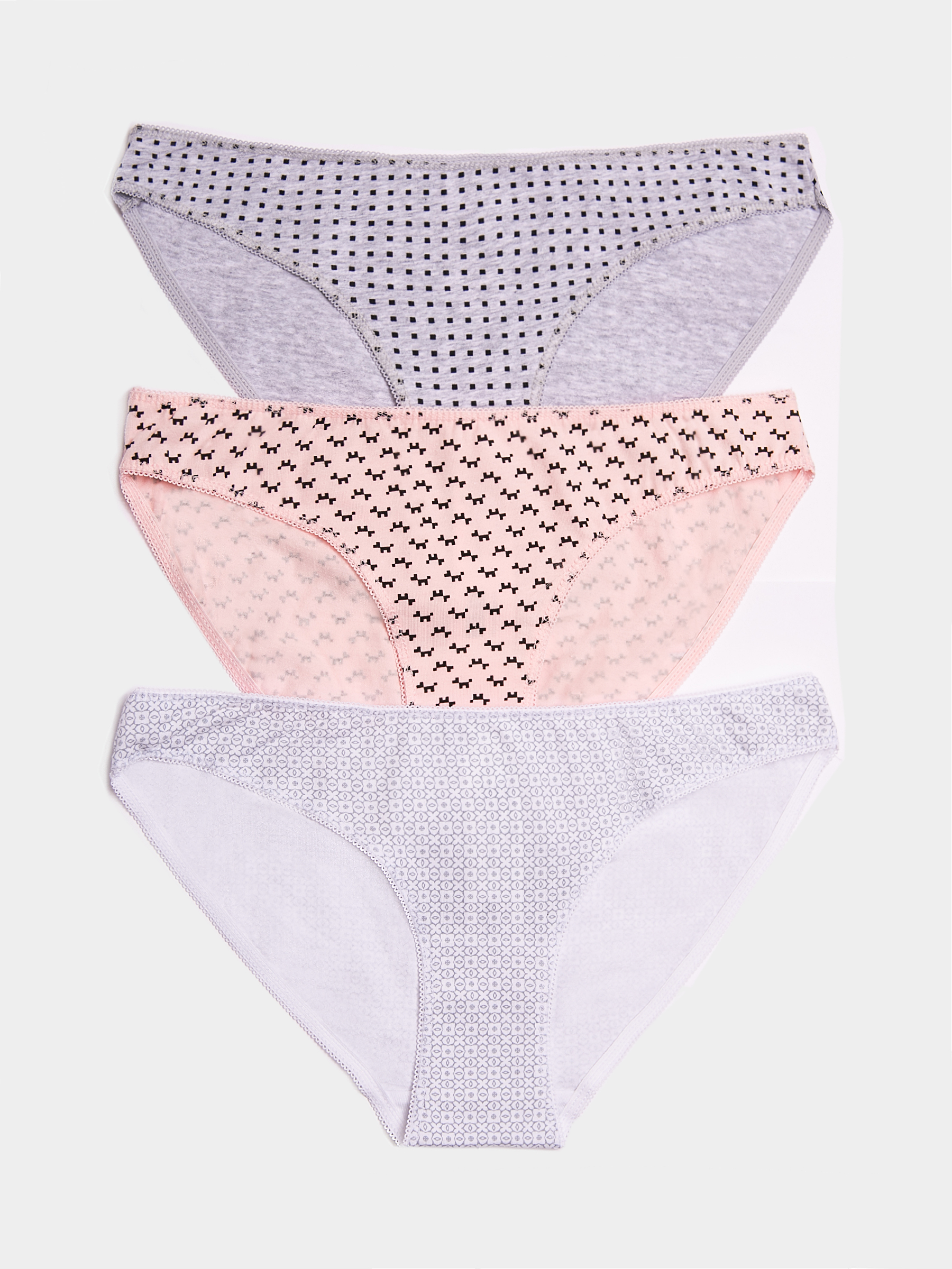 Трусики слип-бикини женские с принтом. Набор из 3-х штук.