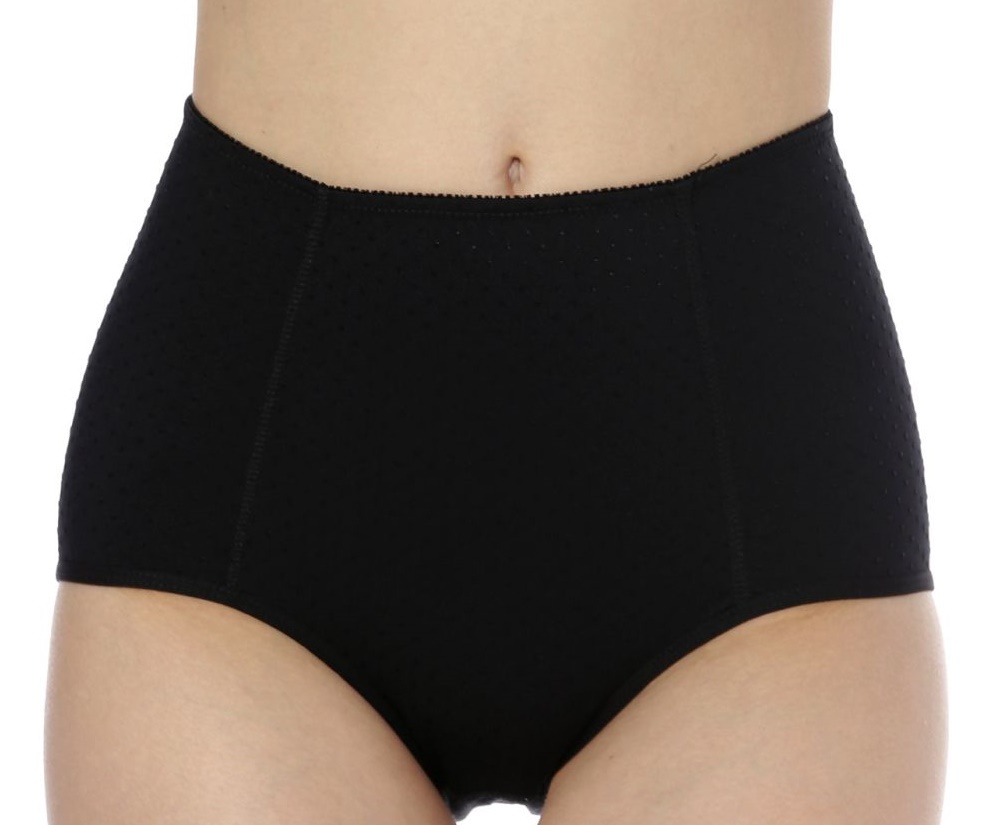 Моделирующие трусики с завышенной линией талии. Удобная и практичная модель выполнена из высококачественного полиамида с эластаном и украшена центральной декоративной вставкой на передней части изделия.