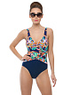 Элегантный слитный купальник для дам размера плюс. Эффектная двухсторонняя драпировка великолепно компенсирует недостатки фигуры, а сложная внутренняя конструкция купальника за счёт встроенных утягивающих деталей – сетки Power net и пояса underbust - отлично формирует линии тела. Микрофибра деликатно облегает фигуру, что позволяет избежать лишних складок на теле. Верх купальника выполнен в ярком узоре «Эклектика», классический низ – глубокий темно-синий однотон.