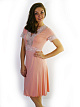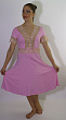 Сорочка прилегающего силуэта, расклешенная к низу, длиной до середины икры. V- образный вырез горловины переда, низ рукава обработаны эластичным кружевом. Рукав короткий.Материал - трикотажное полотно – вискоза, эластичное кружево.