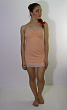 Кокетливая короткая сорочка из нежного однотонного хлопкового трикотажа, полуприлегающего силуэта, на узких бретелях, с мягкими складочками по центру груди. Горловина и низ сорочки отделаны изящным фигурным кружевом.