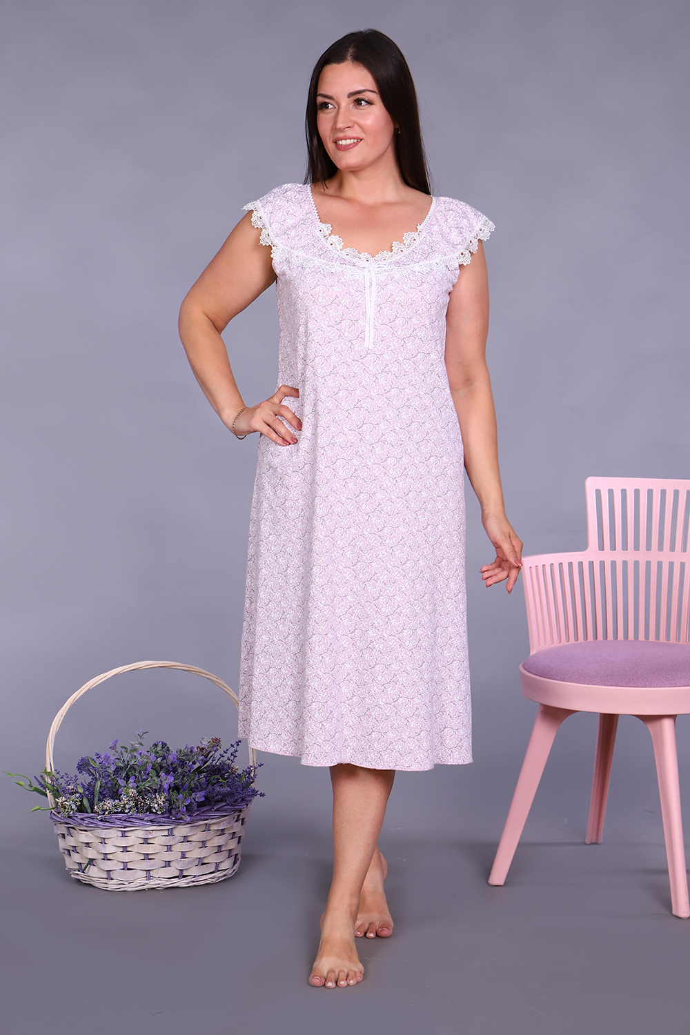 Сорочка женская выполнена из кулирки 100% хлопок. Сорочка ночная - идеальный вариант для сна. Элегантная женская сорочка, свободного кроя с красивым принтом на ткани, приятная к телу, легкая. Горловина округлой формы, отделанная кружевом и бантом. Сорочка подчеркнет Вашу женственность и элегантность.