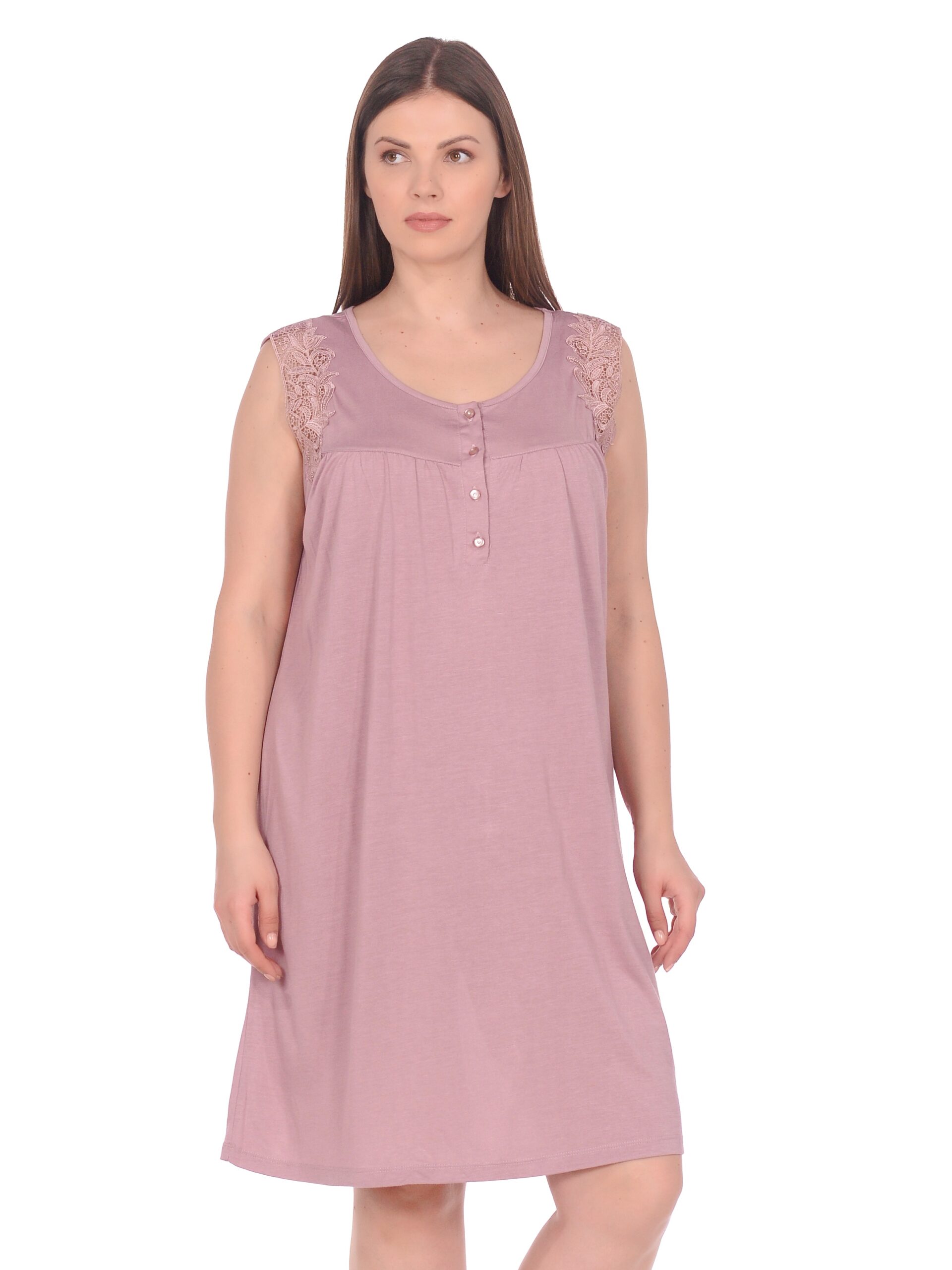 Сорочка на широких бретелях с кружевом.