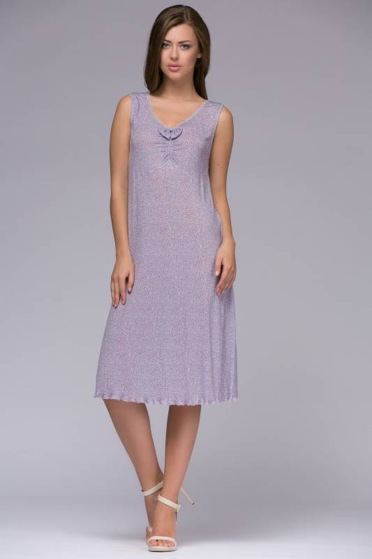 Оригинальный покрой женской сорочки создаёт ощущение простоты, естественности и при этом отточенности форм. Низ сорочки обрамлён тесьмой, а круглый вырез украшен милым бантиком того же цвета, что и основное полотно. Боковые разрезы снизу подчёркнуты драпировкой. Все эти нежные мелочи формируют неподражаемый стиль.