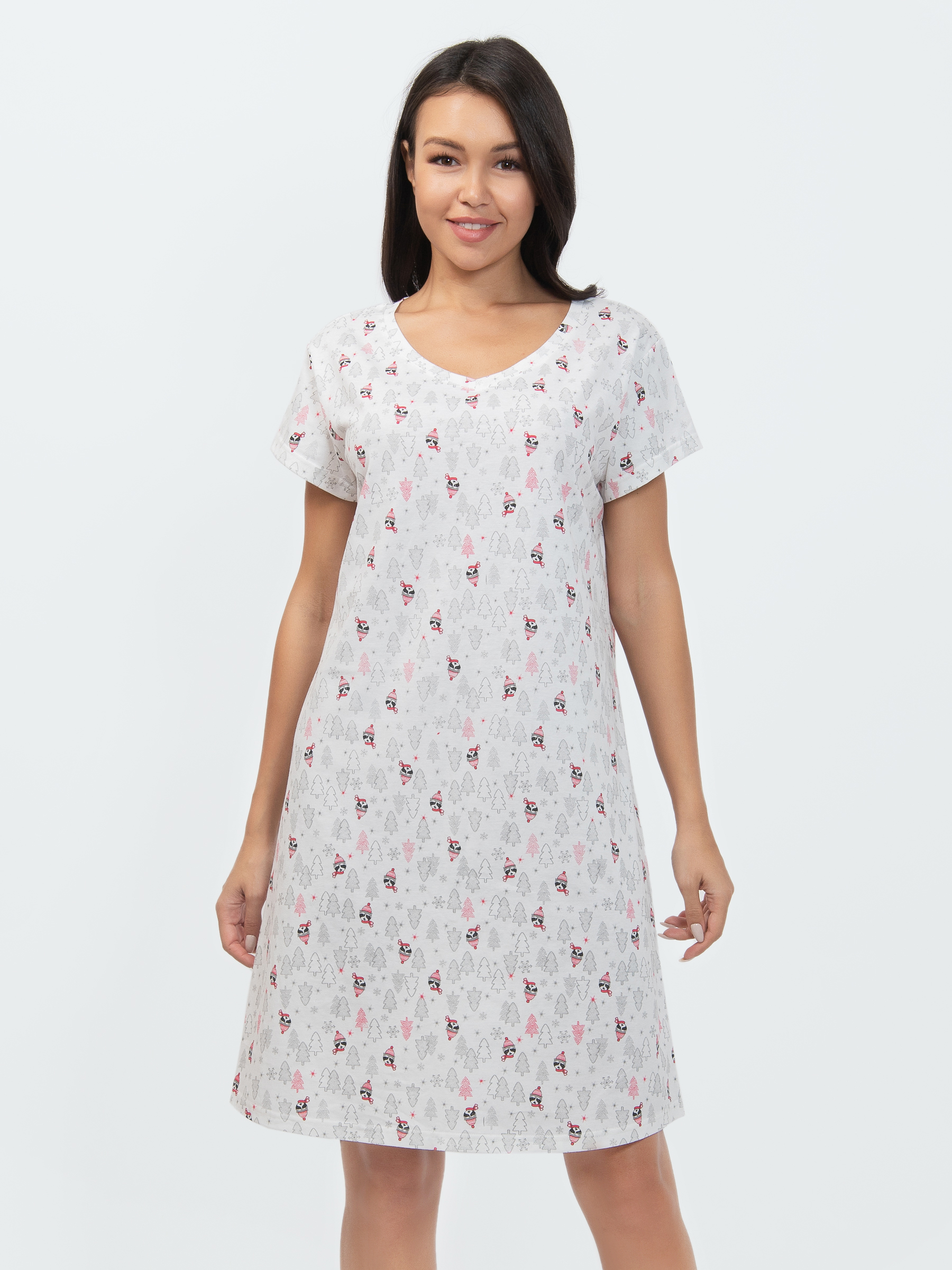 Комфортная сорочка из "Новогодней коллекции". Модель полуприлегающего силуэта с V-образным вырезом горловины. Выполнена из хлопкового полотна с контрастным принтом в зимней стилистике.