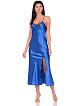 Женская короткая сорочка из шелка, полуприлегающего силуэта, расширенная книзу, на тонких регулируемых бретелях, вырез декольте и низ изделия декорированы узкой кружевной лентой, на левом бедре расположена декоративная вставка из кружевного полотна, верх украшен бантиками из узкого кружева.
