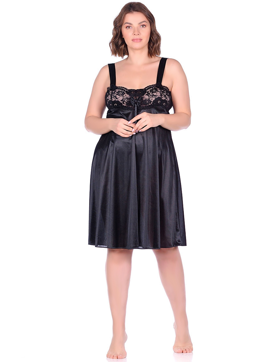 Короткая шелковая комбинация с кружевной отделкой в области груди,