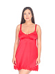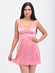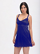 Нарядная короткая сорочка выполнена из однотонного шёлкового трикотажа, полуприлегающего силуэта, расклешенная книзу; чашки под грудью мягко собраны складочками, линия декольте и низ сорочки украшены фигурным кружевом.
