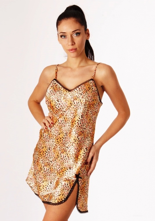 Цветная короткая сорочка на тонких бретельках.