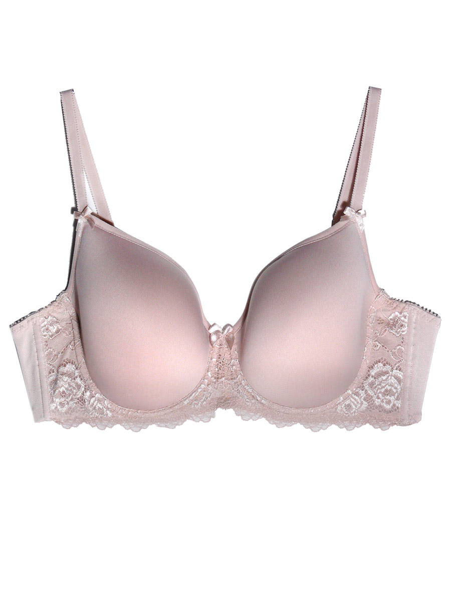 Классический бюстгальтер с формованной бесшовной чашкой. Чашка спенсер отделана кружевом.
