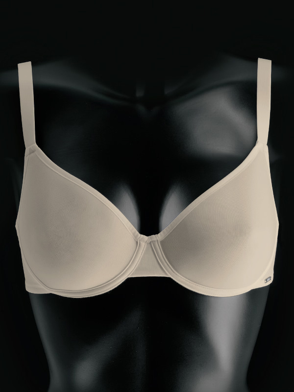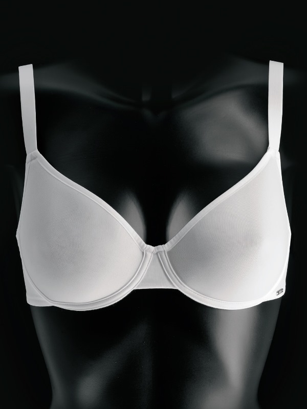Бюстгальтер с формованной мягкой чашкой на каркасах, выполнен из инновационной двухслойной ткани Spacer, дышащей и необычайно легкой. Бретели несъемные, с регуляторами. В качестве декора используется фирменный логотип Lormar.