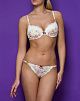 Трусики-стринг из эластичной принтованной ткани и эластичного кружева.Передняя деталь декорирована атласным бантиком.