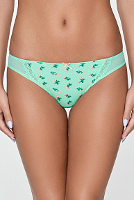 Трусы стринги из эластичного принтованного полотна и кружева. Декорированы бантиком по центру.