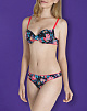 Яркие трусики-стринг из эластичного трикотажа с цветочным принтом.Передняя деталь декорирована бантиком,