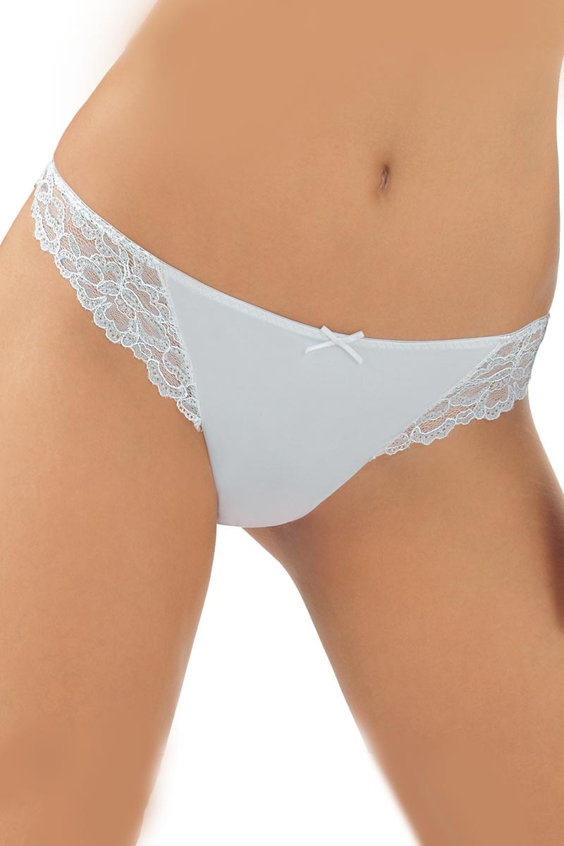 Классические трусики-стринги из гладкой микрофибры, фронтальная часть декорирована нежными кружевными вставочками. Края обработаны лазером по технологии "без швов".
