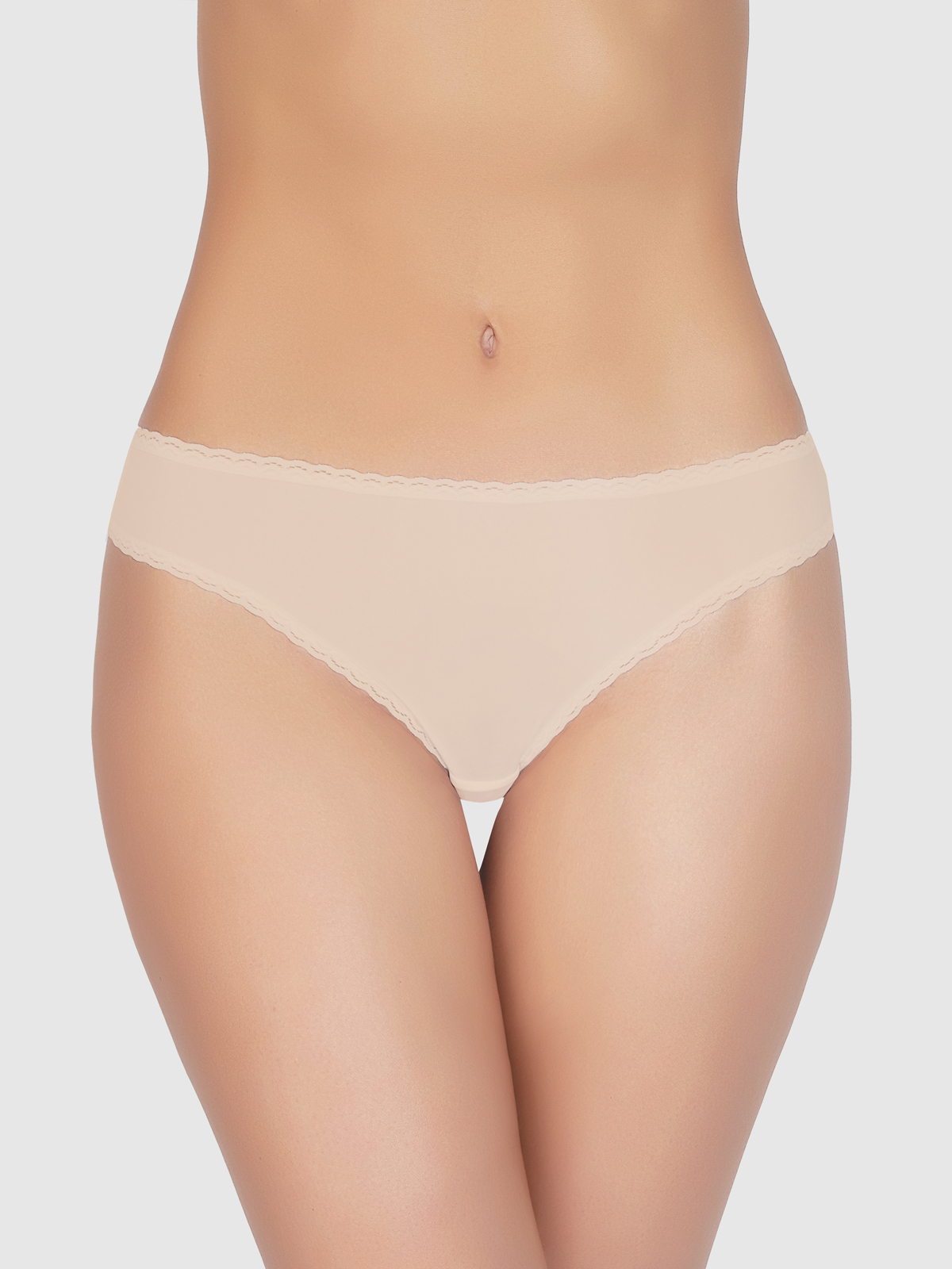 Мини-стринги из полиамидного полотна с тонкой кружевной отделкой. Незаменимая вещь в базовом гардеробе каждой женщины.