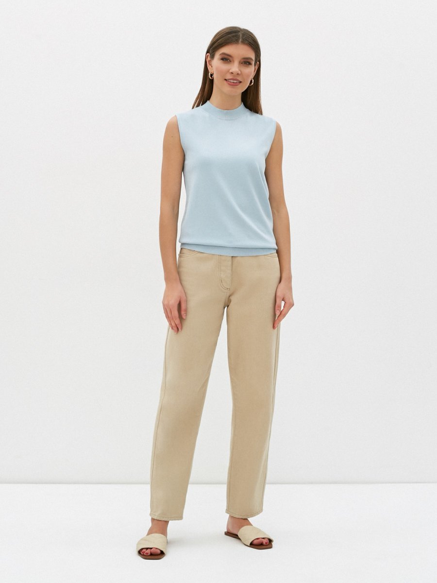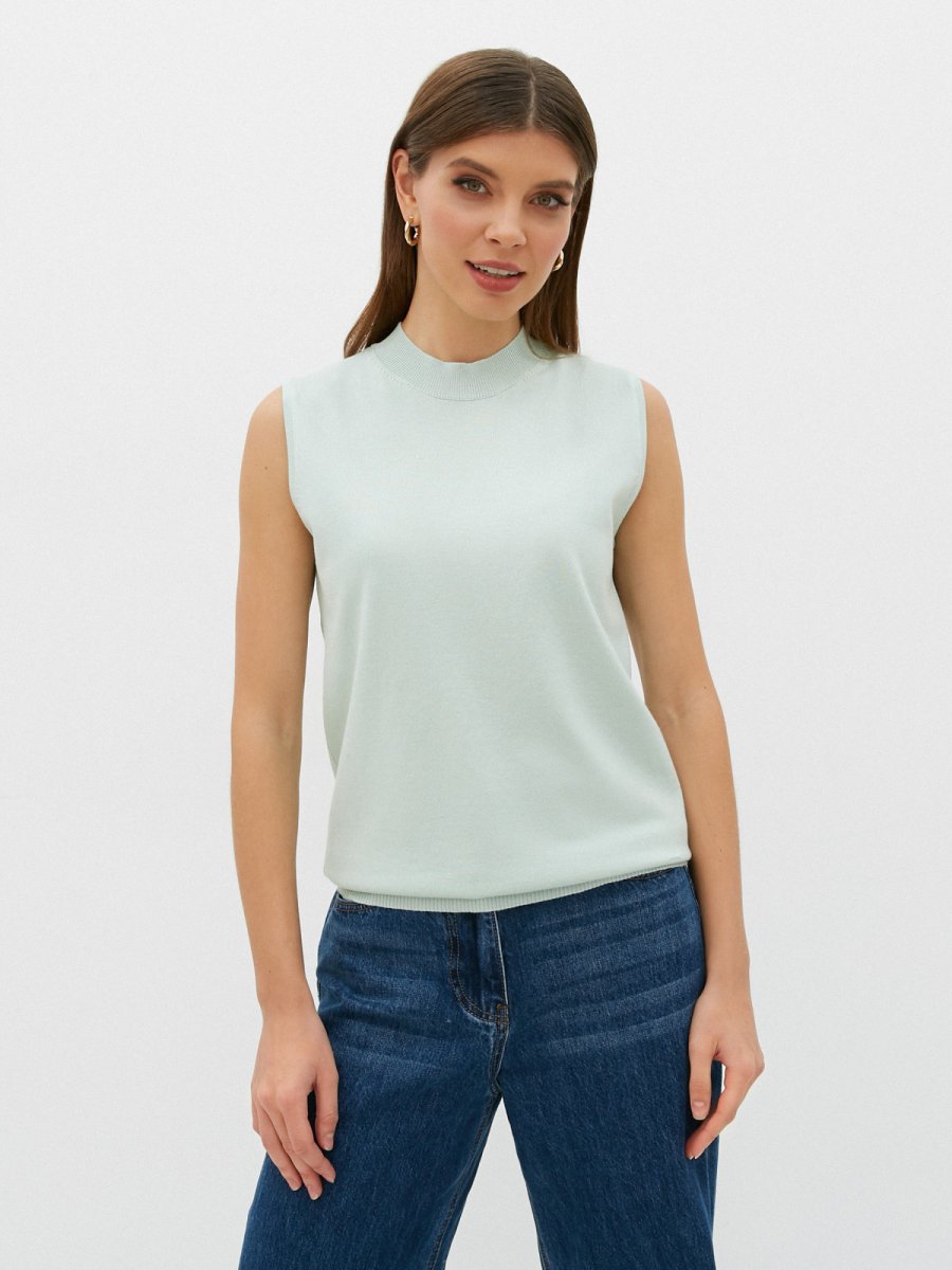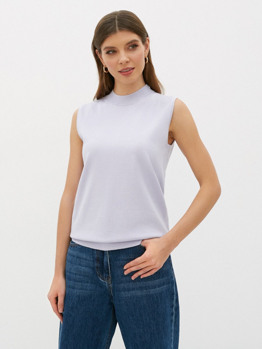 Топ без рукавов и круглым вырезом под горло. Модель свободно облегающего силуэта с фактурными низом.Топ изготовлен из приятного к телу трикотажа высокого качества.