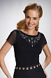 Элегантная женская блузка из мягкой вискозы с короткими прозрачными рукавами из микросеточки и вырезом "лодочка", на груди узор "колье" из страз и пайеток.