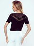 Элегантная блузка с тюлевым воротником-стойкой и короткими прозрачными рукавами. Зона декольте модели выполнена из кружева с крупным цветочным узором и аккуратным вырезом-каплей.
