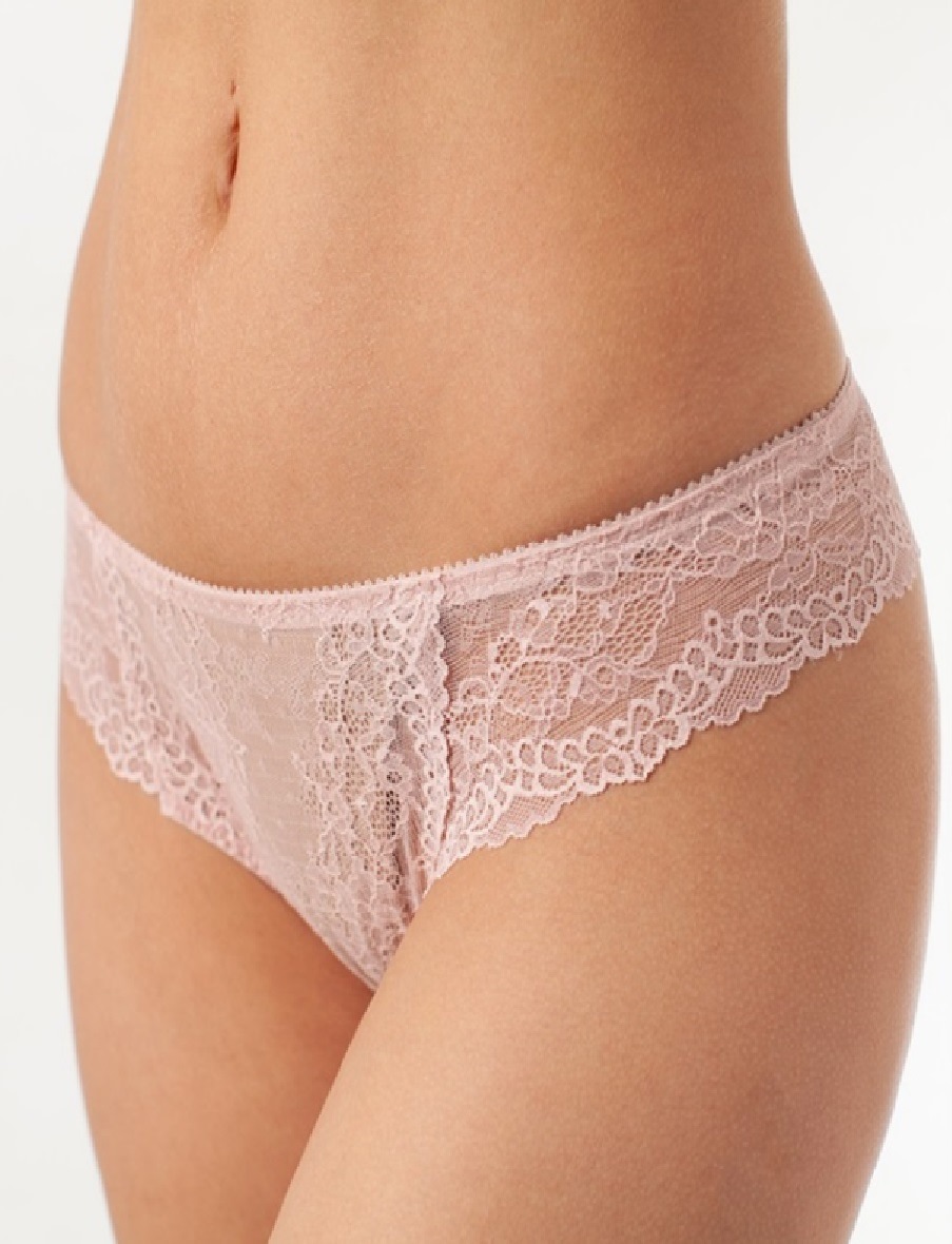 Трусы-слип со средней линией талии, передняя деталь из элстичного полотна, задняя деталь украшена кружевом.