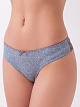 Трусы-бразилиана со средней линией талии. Передняя деталь выполнена из шелковистого эластичного принтованного полотна, задняя деталь выполнена из эластичного кружева. Проймы передней детали обработаны мягкой эластичной лентой на плоскошовной машине. Украшение бантик с логотипом COQUETTE REVUE.
