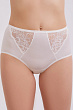 Трусы слип с высокой линией талии. Выполнены из эластичного трикотажного полотна, на передней детали вставки из эластичного кружевного полотна. Нижние срезы обработаны комфортным плоским швом.
