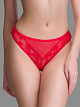 Трусики-бразилиана со средней посадкой, высота бочка 4,5 см. Пояс обработан тончайшей резинкой. Плоские срезы у ножек. Выполнены из утонченного кружева и сетки с диагональной полоской. Коллекция "Scarlett".