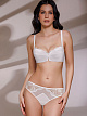 Трусы-слип со средней линией талии. Высота бочка 6,5 см. Особым образом скроенная задняя кружевная деталь визуально уменьшает объём бёдер. Выполнены из роскошного полупрозрачного кружева, гладкой шелковистой микрофибры и эластичной сеточки. Коллекция "Jolin".