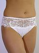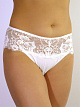 Высокие трусы из кружевного полотна с коррекцией средней степени в области живота. Верх прошит эластичной лентой с силиконом.