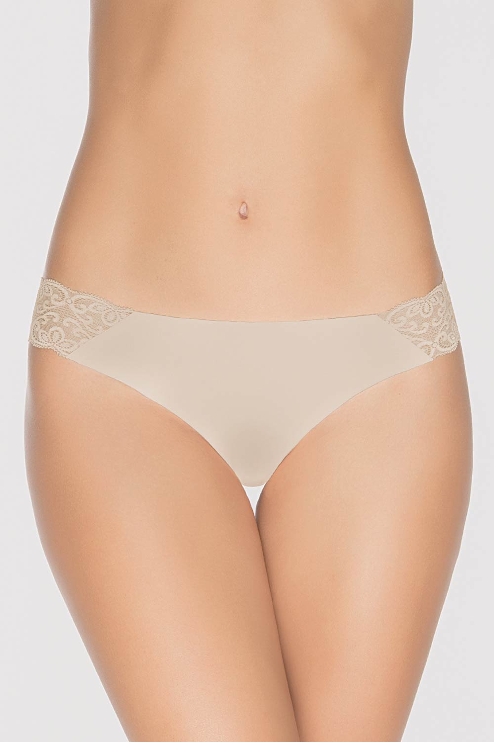 Бразилиано из полиамидного полотна нового поколени с кружевными вставками по бокам изделия. Модель выполнена без швов с использованием новейших клеевых технологий с лазерной обработкой по ножке.