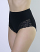 Элегантные корректирующие трусики с высоким утягивающим поясом и гигиеничной ластовицей, отделаны ажурной тесьмой, фронт декорирован кружевом.