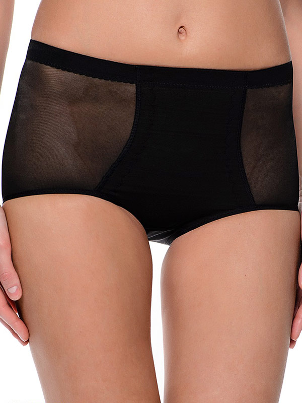Трусы с эффектом увеличения ягодиц. Трусы с высокой линией талии из функционального сетчатого полотна. Передняя деталь из двойного функционального сетчатого полотна. В специально сконструированные карманы сзади вставляются объемные вкладыши с силиконовым наполнителем, создающие идеальную женственную форму ягодиц. Очень натуральное ощущение на ощупь.