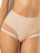 Трусы-утяжка с высокой линией талии. Выполнены из уплотненной микрофибры. Передняя часть дублирована сеткой обеспечивающей легкий утягивающий эффект и поддержку в области живота. Сзади по линии открытия ноги проложена силиконовая лента для комфортной носки. Высота бочка 18 см.
