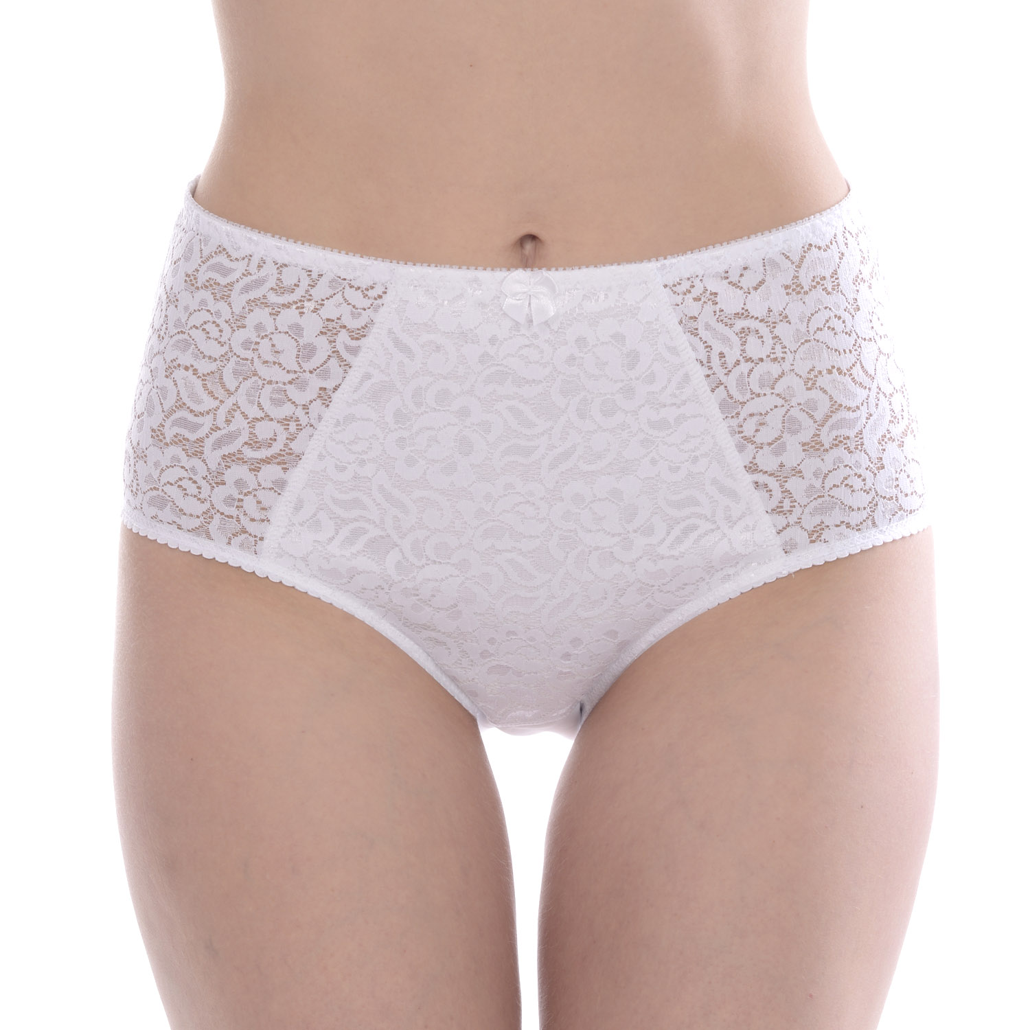 Трусы, корректирующие фигуру, из высококачественного полиамидного полотна с кружевной вставкой на передней части изделия.