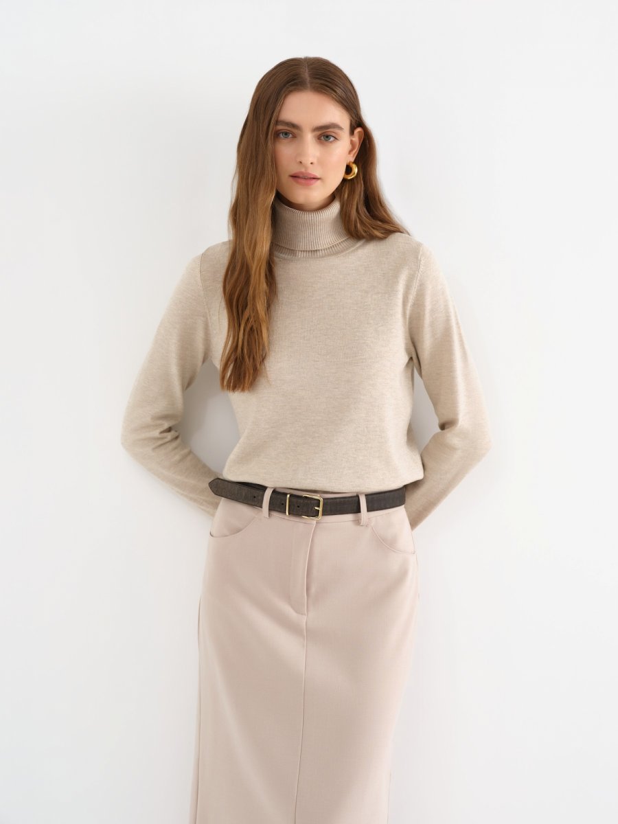 Представляем мини-коллекцию базовых водолазок в классическом исполнении и разнообразных оттенках. Идеальный средний слой вне моды для любого лука. Для этого выполнили изделие в полуприлегающем крое и оптимальной средней длине. Выбрали для него гладкий смесовый трикотаж на основе вискозы с добавлением нейлоновой нити. Такое полотно приятно к телу и удобно в уходе. Двойная горловина в фактурной резинке кашкорсе защищает от холода.