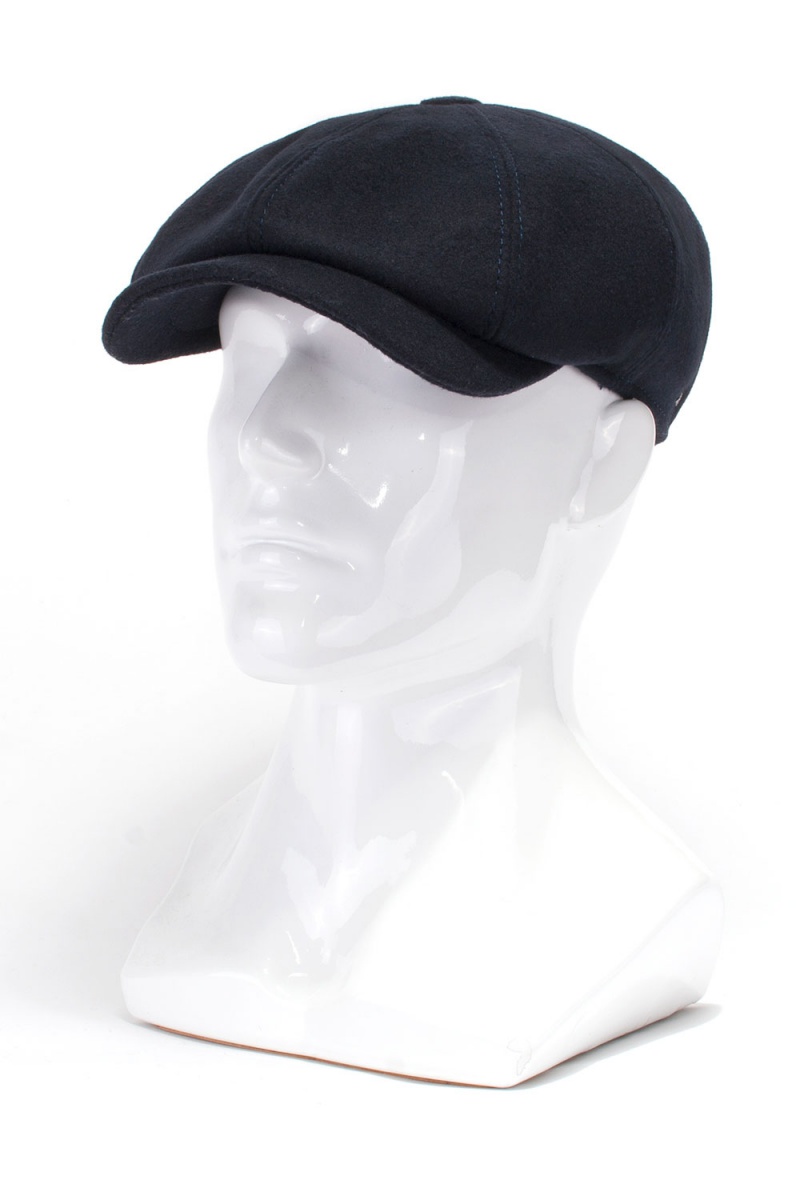 Кепка с удлиненным козырьком выполнена из пальтовой ткани синего цвета. Подкладка из вискозы с тонким синтепоном. Внутри кепки имеются шнурок-утяжка для регулировки размера и ушки для холодной погоды.