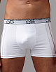 Модные мужские трусы-боксеры облегающего типа с эластичным поясом, украшенным фирменной надписью. Анатомического покроя. Декорированы полосками.