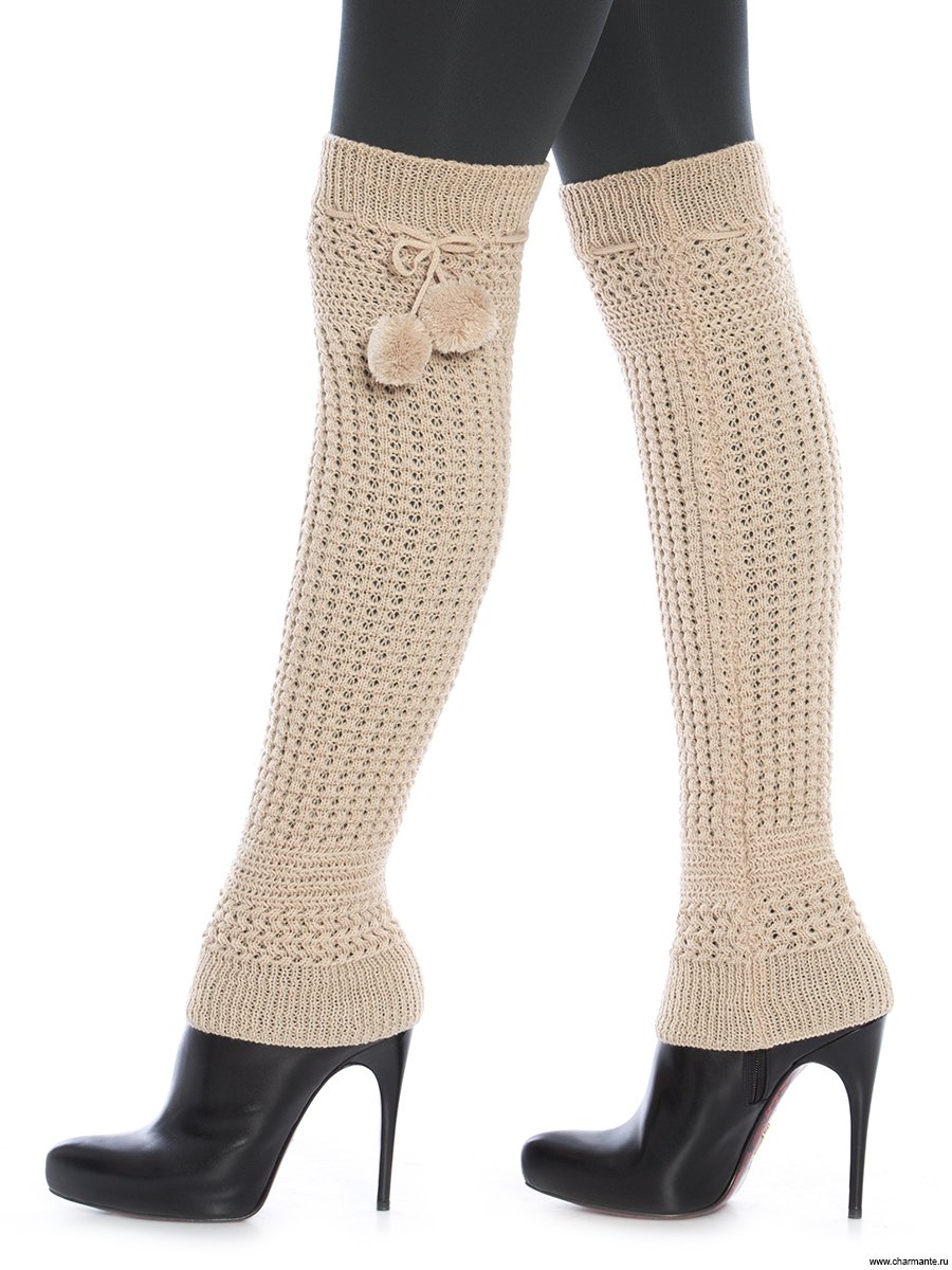 Гетры женские с рельефным рисунком. Декорированы бомбошками.