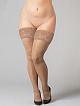 Прозрачные шелковистые чулки plus size (большого размера), плотностью 40 ден, с красивой кружевной резинкой шириной 14,5 см с двумя силиконовыми лентами, благодаря которым изделие надежно фиксируется на необходимой высоте, не скатывается и не сползает с ноги. Мысок модели усилен невидимым уплотнением. Самоудерживающиеся чулки очень практичны и не требуют дополнительных аксессуаров для создания эффектного и сексуального образа. Элегантное кружево декорировано объемным цветочным узором. Чулки прекрасно облегают ножки, формируя ровную поверхность.