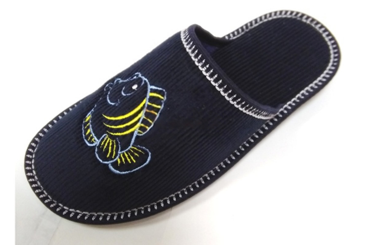 Обувь жен. вельвет синий, вышивка "Рыбка" 502005