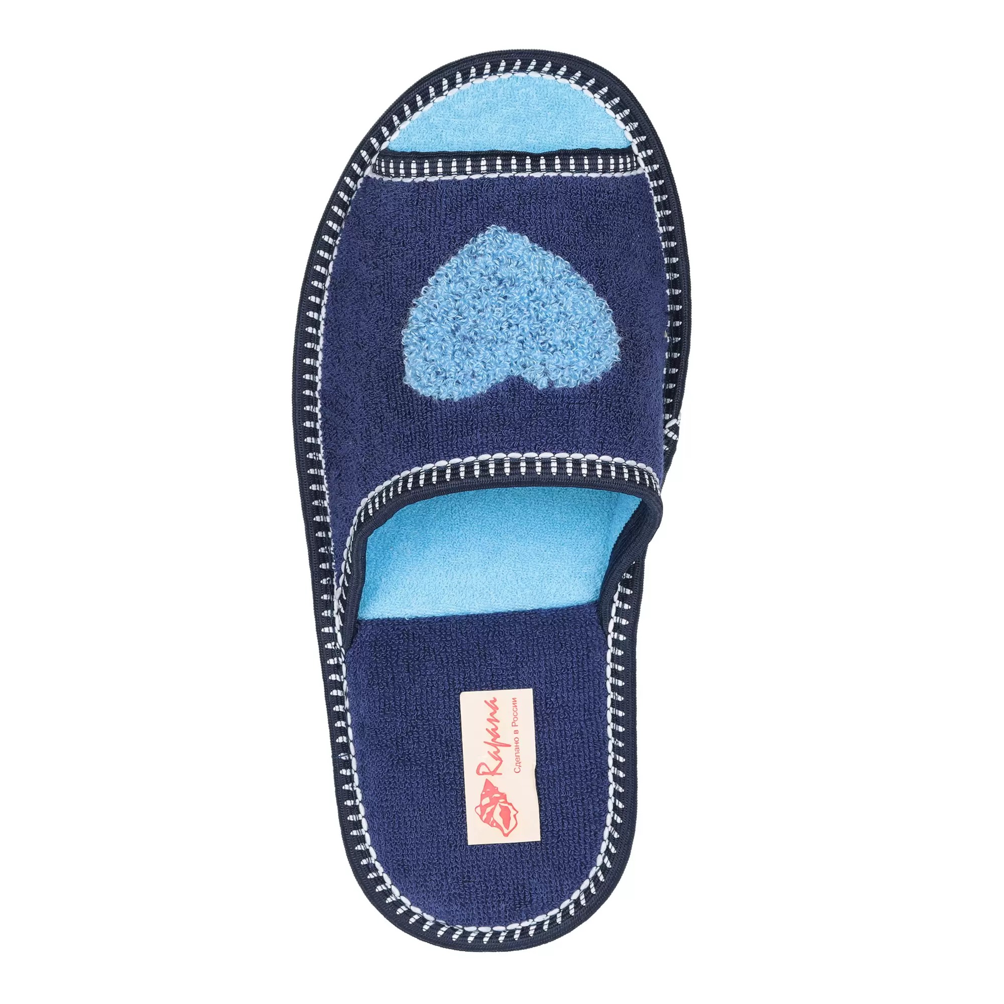 Домашняя обувь женская махра синяя, вышивка "Сердечко" тамбур 513001