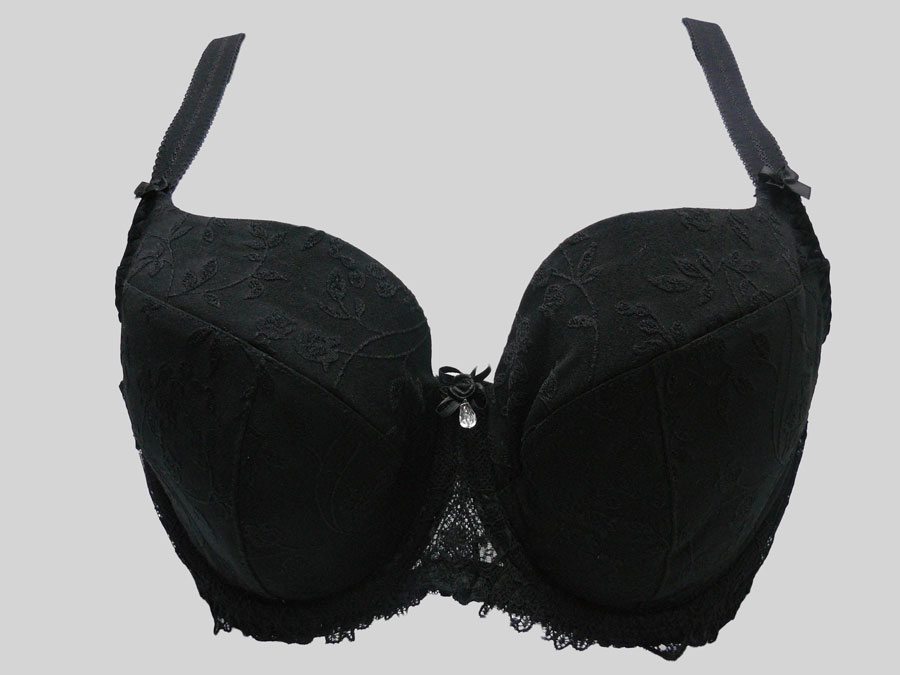 Классический бюстгальтер в необыкновенно красивом исполнении. Удобный, идеально выполненный бюстгальтер для женщин с более пышным бюстом обеспечит чувство небывалого комфорта. Чашки, целиком уплотнённые тонким слое поролона, изнутри проложены хлопчатобумажной тканью. Снаружи чашки бюстгальтера покрыты микрофиброй с нежным, слегка поблёскивающим, растительным узором. Бока выполнены из гладкой, слаборастягиваемой, эластичной ткани и усилены вертикальными косточками, способствующими удержанию бюста. Регулируемые бретели, декорированные кружевной тесьмой, - не съёмные