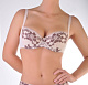 Бюстгальтер на поролоне типа «балконет» с подкроем.Выполнен из эластичного полотна и кружевного эластичного полотна.Боковая корректирующая деталь,переходящая в бретель обеспечивает надежную поддержку и хорошую посадку бюстгальтера.Украшение: атласный бантик.