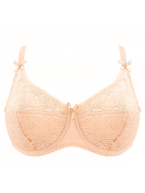 Бюстгальтер "балконет" выполнен из неэластичного кружева и эластичного трикотажного полотна. На каркасах. Нижние детали чашек на дубляже с хлопком. Отделка - атласный бантик.