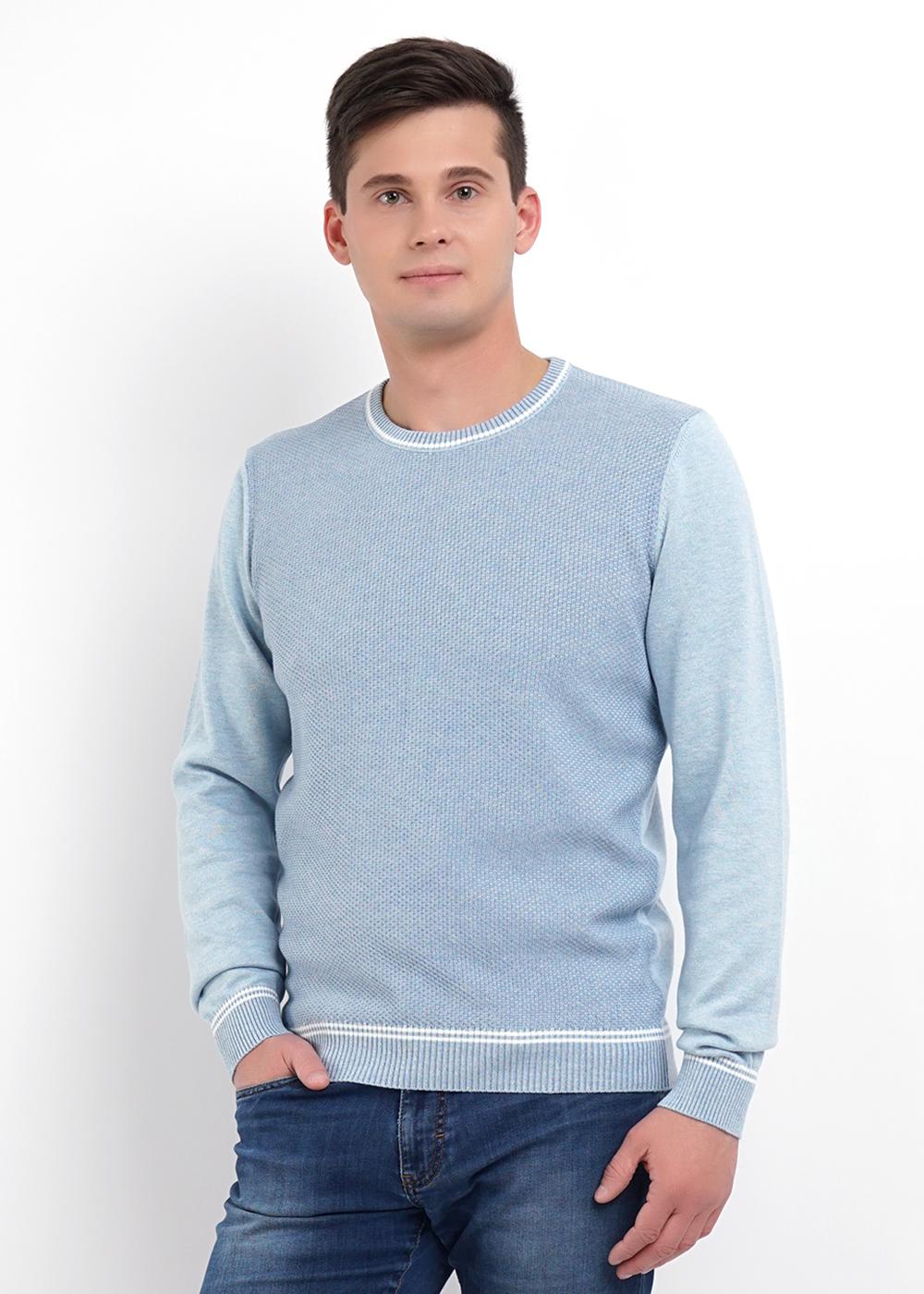 Вязаный джемпер из хлопка и акрила с круглой горловиной. Джемпер выполнен фактурным переплетением. Модель оценят мужчины, ценящие простоту и стиль одновременно.